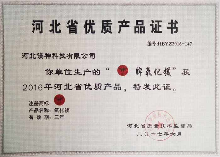 河北省優(yōu)質(zhì)產(chǎn)品證書